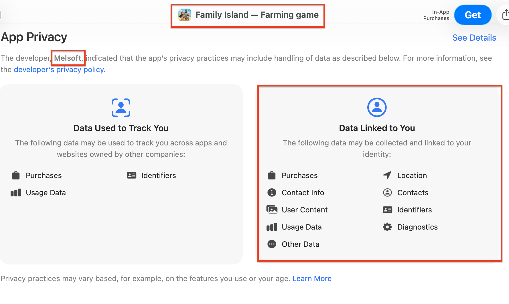 وبالبحث عن هذه اللعبة في "متجر أبل" (App Store)، ظهر أنها تتطلب نفس الأذونات الحساسة التي طُلبت في ألعاب أخرى مرتبطة بالشبكة نفسها، وظهر أن مطورها هو شركة (Melsoft).